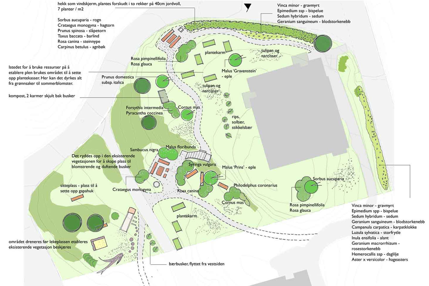 When I first visited Fagernes, a housing estate in the suburbs of Bergen, more than ten years ago, the outside area was neglected and not in use. The housing association wanted to change this and asked me for a manual and maintenance plan. I invited all inhabitants for a workshop to learn about people's ideas, wishes, and also to understand what they didn't want (which is also important!). The housing association made it clear from the beginning that they wanted to do the work themselves and not hire a contractor. Thus, I drew a master plan and planting plans, implementing their wishes (more trees, more plants to attract insects, better connections between the different areas etc). I also added a 'manual' - a DIY guidebook for the community, outlining the work sequences in regard to the seasons and the association's budget. To avoid disappointment and frustration, I took great care to divide the tasks in smaller 'portions'and explained that a garden is a never-ending-project.
