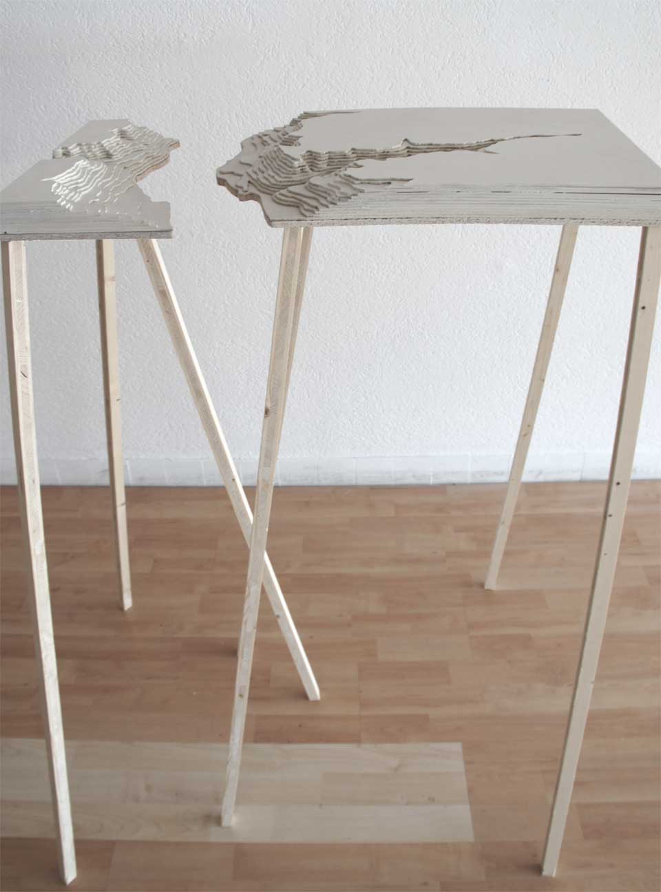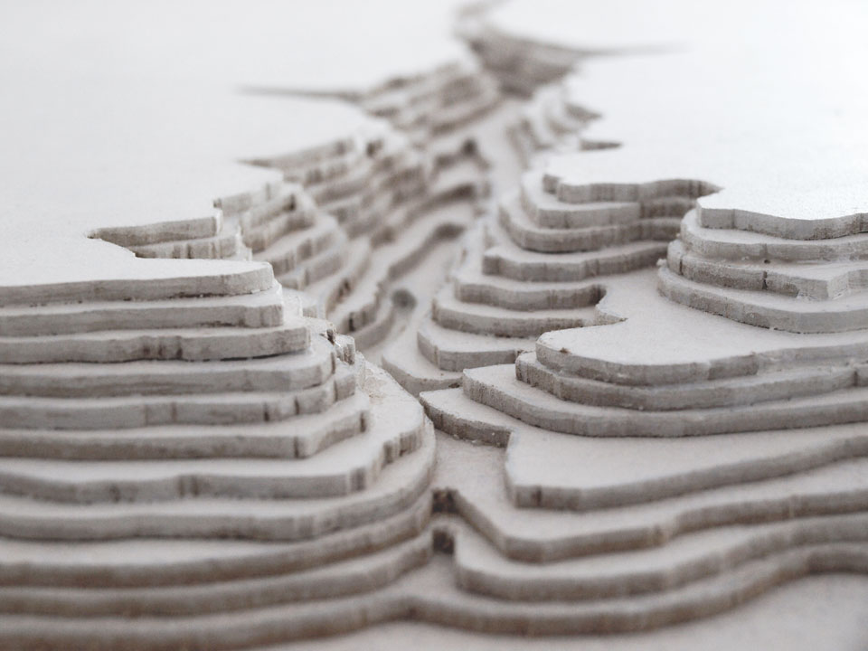 The gap in the middle depicts the river running through the valley. By keeping the model apart, the width of the river can be easily adjusted, it can be widened or narrowed, depending on the current situation and need.