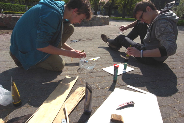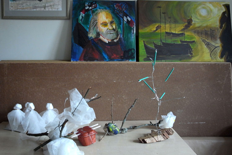 You may want to make a sketch to start with, use adjectives to describe your ‘landscape of memory’. However, the final result should be threedimensional, a little sculpture, like a spatial picture. I have brought lots of different materials, wood, cloth, string, paint, plaster, branches, hammer and nails – it’s all in the box.