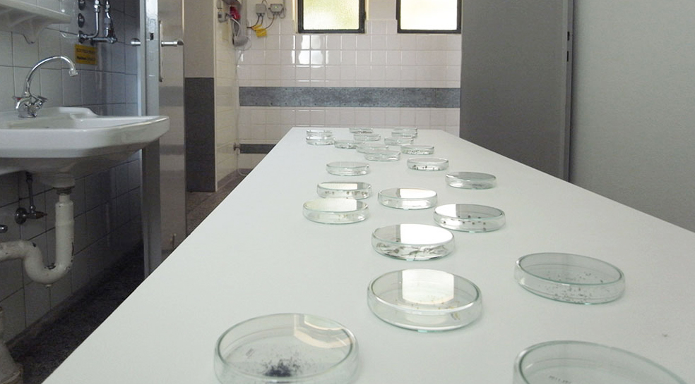 The inner yard of the prison in Hannover Langenhagen is protected by the landscape conservation guidelines. Nowadays depicting a wasteland, characterized by a drastic clear-cut in an area which used to be a habitat for bats. Right next door the airport, clearly perceivable by smell and noise of the continuous take-off and landing. Parts of the surrounding can be seen through gaps in the fences and grills, as if cut into sections.