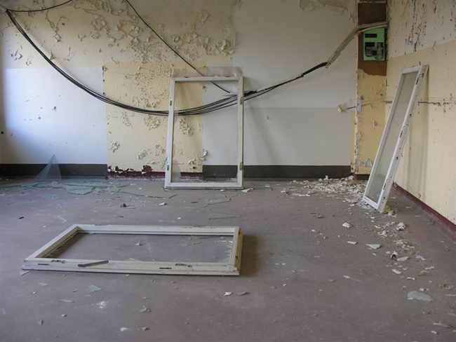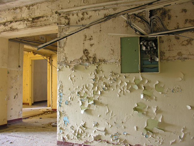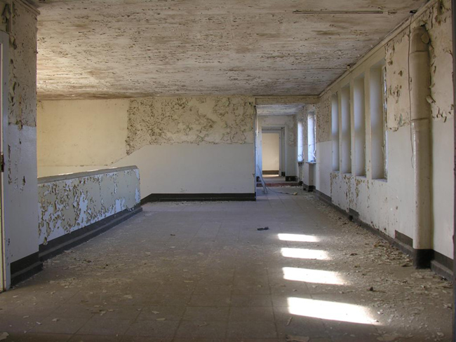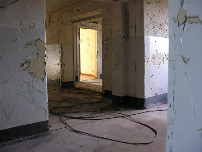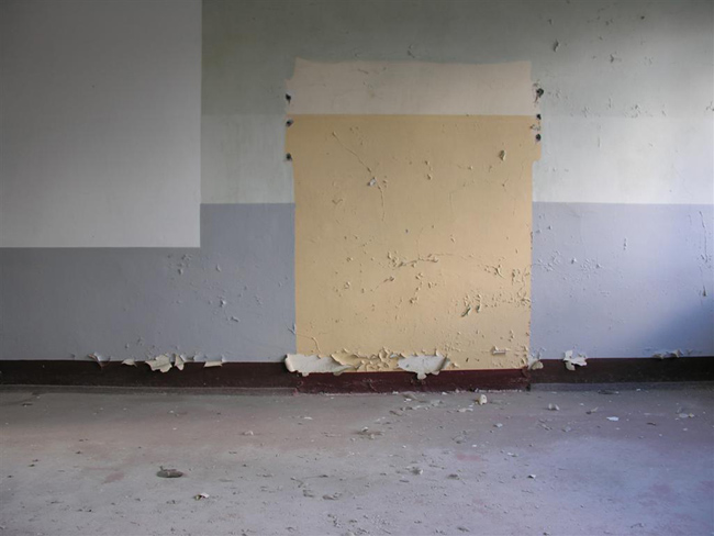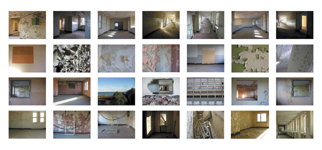 I spent one day in one of the massive building blocks of Prora and take photographs. Currently, there are plans to develop this ruin of the Nazi era into a holiday resort. I want to capture the current state, which seems like a contemporary document of the last 70 years. The original building structures are superimposed by decades of use during the GDR period. The result is a series of photographs that appear like framed views. Blocked vistas, visual axes, rectangular color patches. Constricted, oppressive.